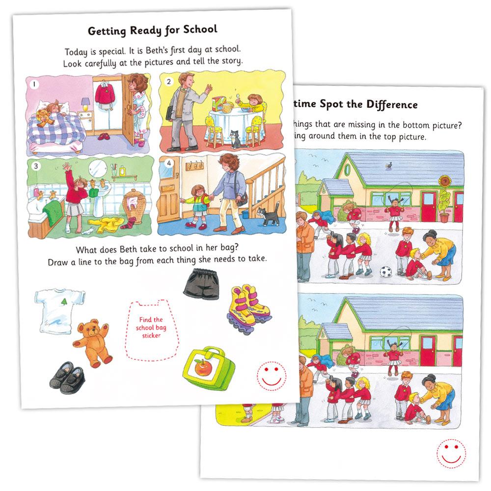 Find out about school life in this home learning book, with fun activities and colourful stickers. Ideal to prepare a child for starting school.