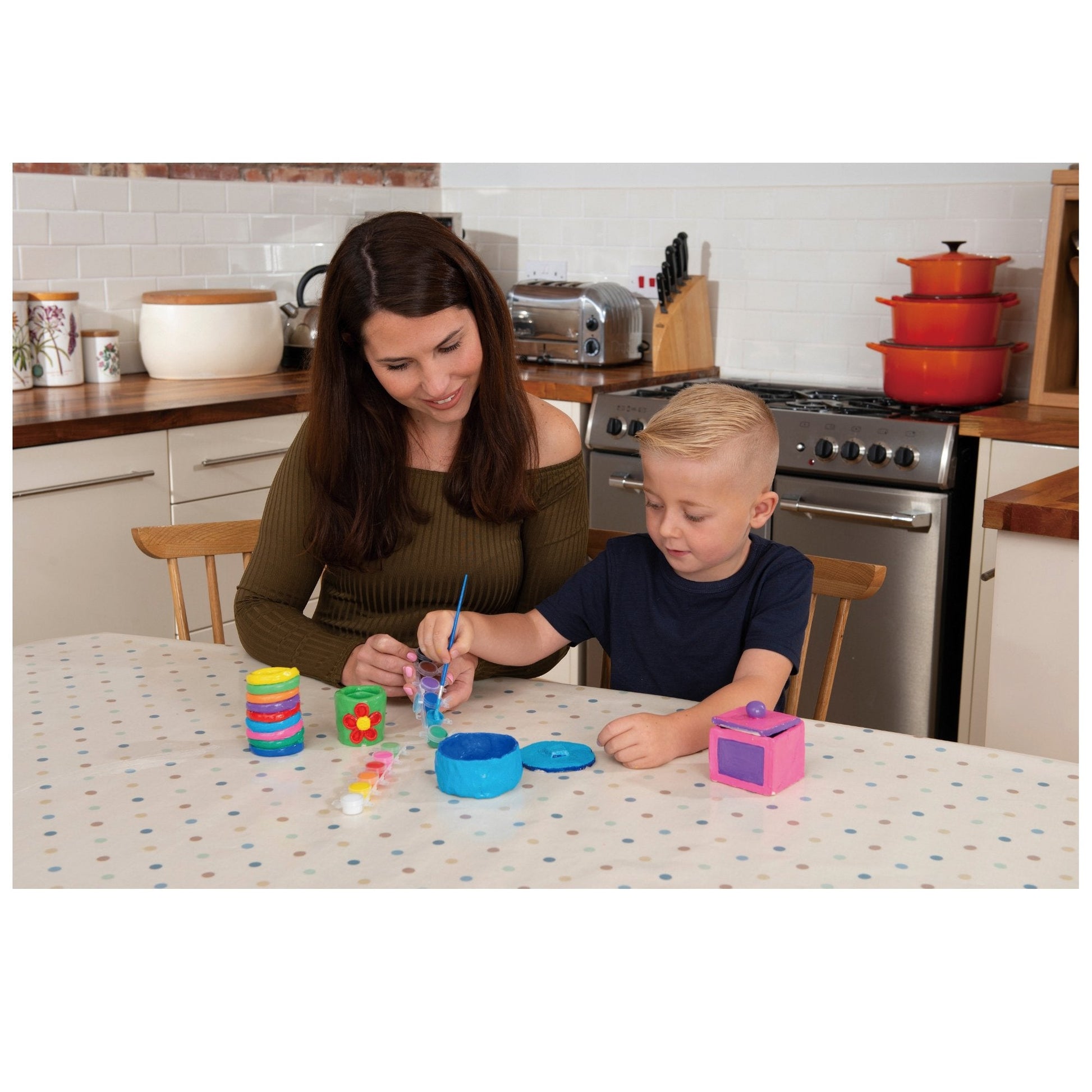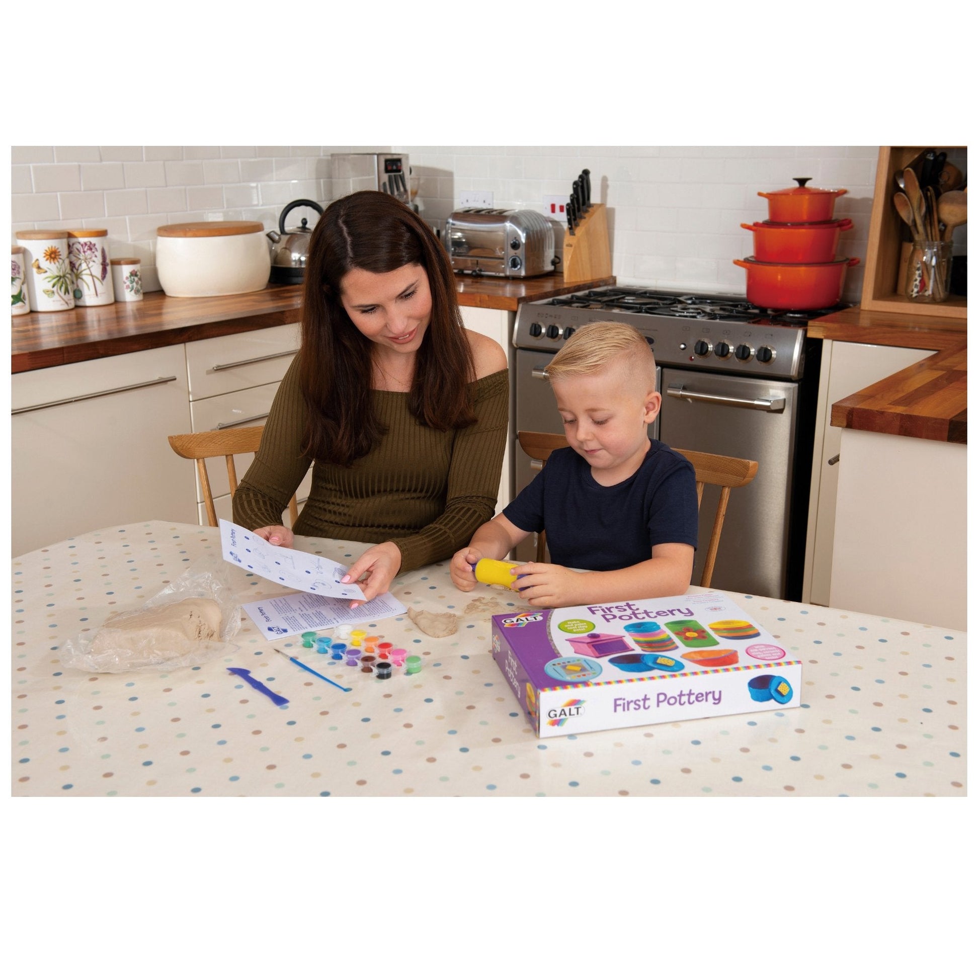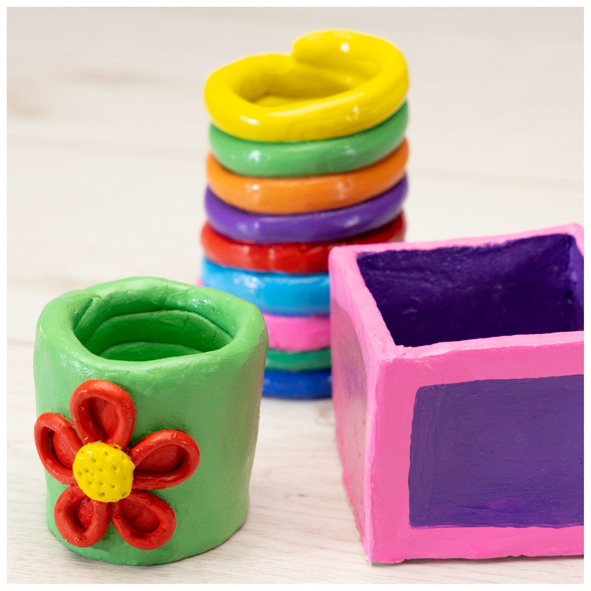 Make and paint a variety of clay pots with this cool kit. Learn the basic techniques of pottery to create pinch pots, slab pots and coil pots from the air-drying clay then decorate them with the colourful ceramic paints. Contents: 1.2kg air-drying clay, rolling pin, modelling tool, 12 x 2.3ml ceramic paints, paintbrush, guide.